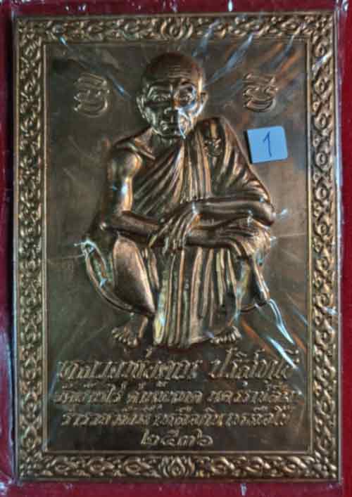 แผ่นปั้มรูปเหมือน หลวงพ่อคูณ ขนาด 3.5x5.0 นิ้ว เนื้อทองแดง ถุงเดิม ปี36 |