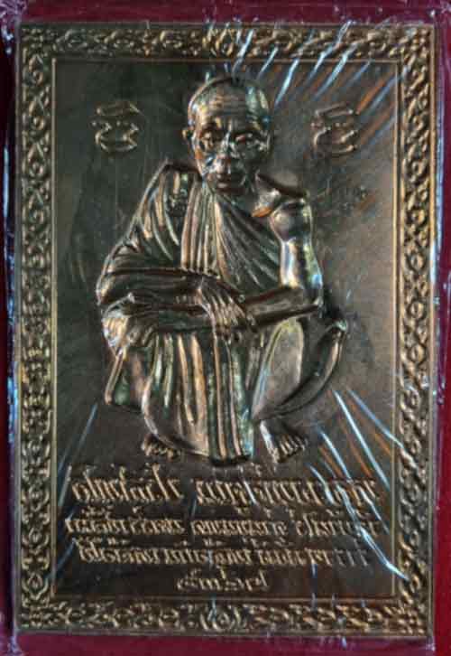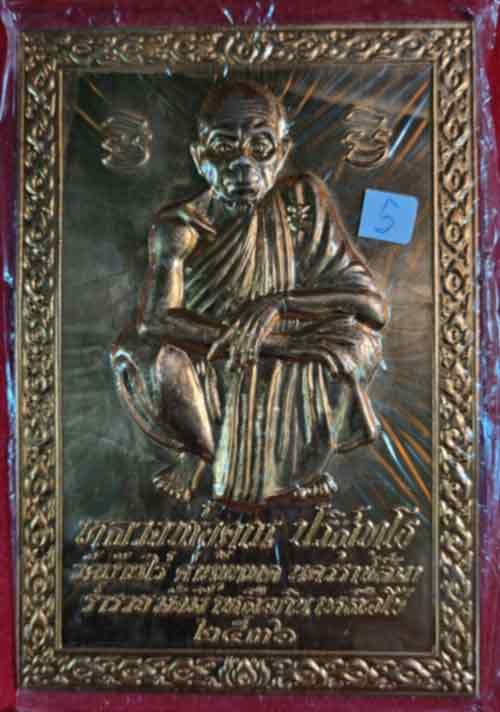 แผ่นปั้มรูปเหมือน หลวงพ่อคูณ ขนาด 3.5x5.0 นิ้ว เนื้อทองแดง ถุงเดิม ปี36 |