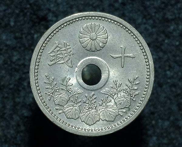 เหรียญกษาปณ์ญี่ปุ่น 10 sen ยุคไทโช(Taisho jidai - รัชสมัยสมเด็จพระจักรพรรดิไทโช ปีที่ 12) - ค.ศ.1923 unc ไม่ผ่านใช้ |