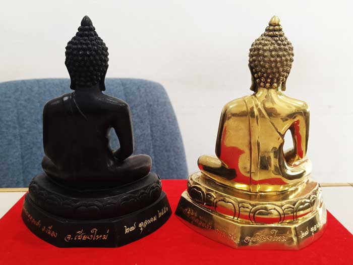 วัดใจเคาะเดียวแดง ++ พระบูชาหลวงพ่อทันใจ วัดพระธาตุดอยคำ จ.เชียงใหม่ เนื้อโลหะรมดำ + เนื้อทองเหลืองขัดเงา สภาพสวย |