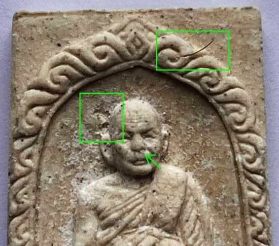 - หลวงปู่เริ่มมีกระเทาะขอบล่าง+ขอบขวา+จมูกมีตำหนิ+ตำหนิแขนซ้าย