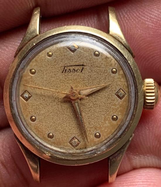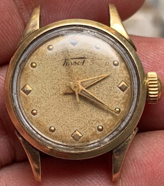 นาฬิกาเก่า วินเทจ Tissot Swiss Made ทองแปะ ระบบไขลาน ทอง 14 k ยิง% ได้ 57.13 เดินปกติ หายากน่าสะสม