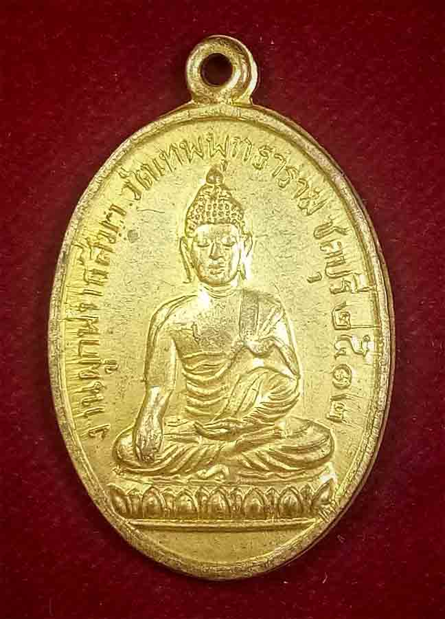 เหรียญ พระพุทธ ที่ระลึกงานผูกพัทธสีมา วัดเทพพุทธาราม ชลบุรี ปี 2512....ฝาบาตร |