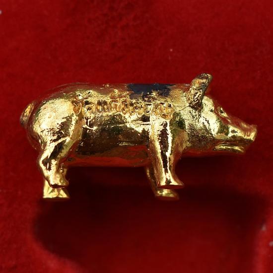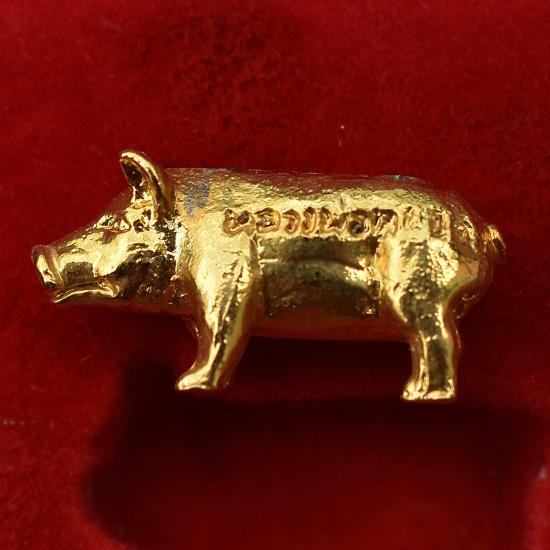 *** เคาะเดียวแดง ทุกรายการ *** หมู เนื้อโลหะ หลวงพ่อหยอด วัดแก้วเจริญ สมุทรสงคราม มีกล่อง สภาพตามรูป (No.1)