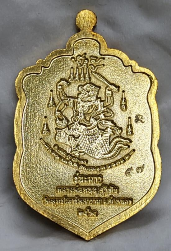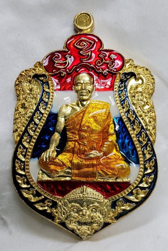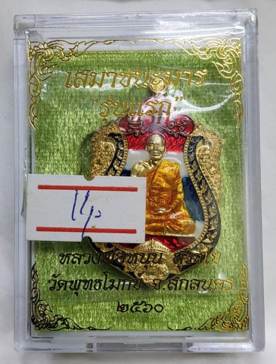 เหรียญเสมา"ชนะมาร" หลวงปู่หนุน วิชโย วัดพุทธโมกข์ จ.สกลนคร ร.14 เนื้อกะไหลทองลงยาธงชาติ เลข ๕๗ กล่องเดิม
