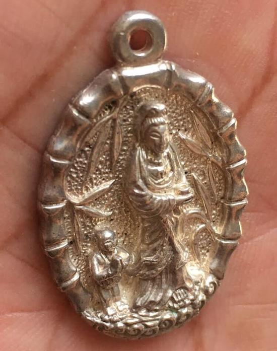 เหรียญเจ้าแม่กวนอิม วัดซับไม้แดง เนื้อเงิน ปี 2518