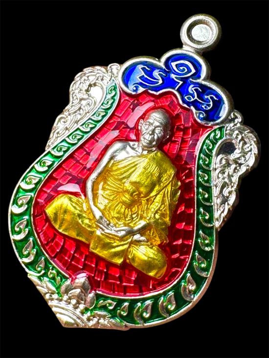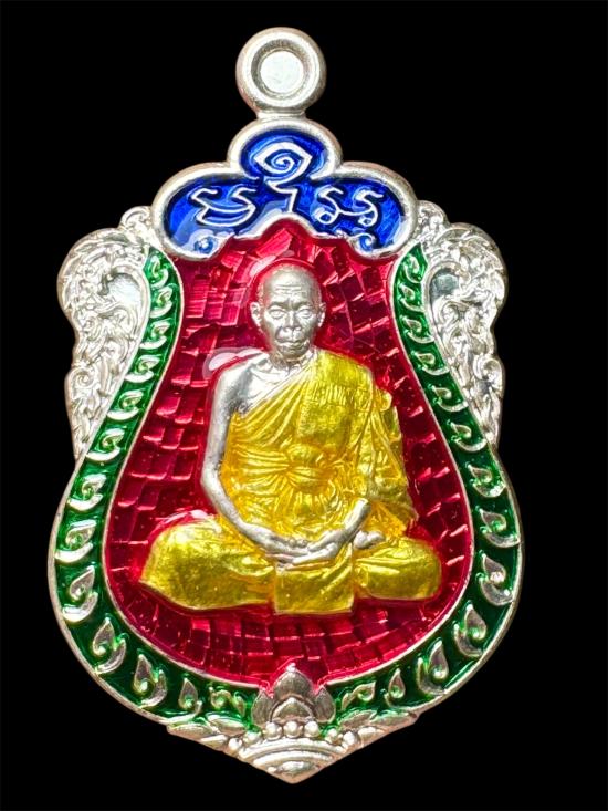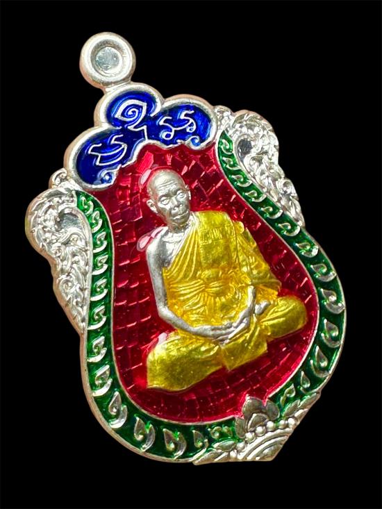 หลวงพ่อสิน เสมา 7 รอบ เนื้อเงินลงยา 4 สี พระสวยมากๆ เลข 1228 ตอกศาลา 1 โค๊ต พร้อมกล่อง เคาะแรก
