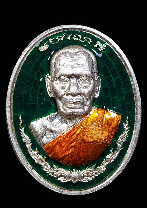 กำลังมาแรง เหรียญรวยชนะรวย หลังหนุมาน หลวงพ่อพัฒน์ วัดห้วยด้วน จ.นครสวรรค์ เนื้อเงินลงยาสีเขียว จีวรเหลือง สร้างน้อยเพียง 149 องค์เท่านั้น น่าบูชายิ่งนัก