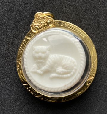 วัดใจเคาะเดียวแดงจ้า คชสารแกะลายเสือนอนกิน พระอาจารย์ประสูติ วัดในเตา เลี่ยมกรอบพร้อมใช้ เคาะเดียวแดงจ้าข