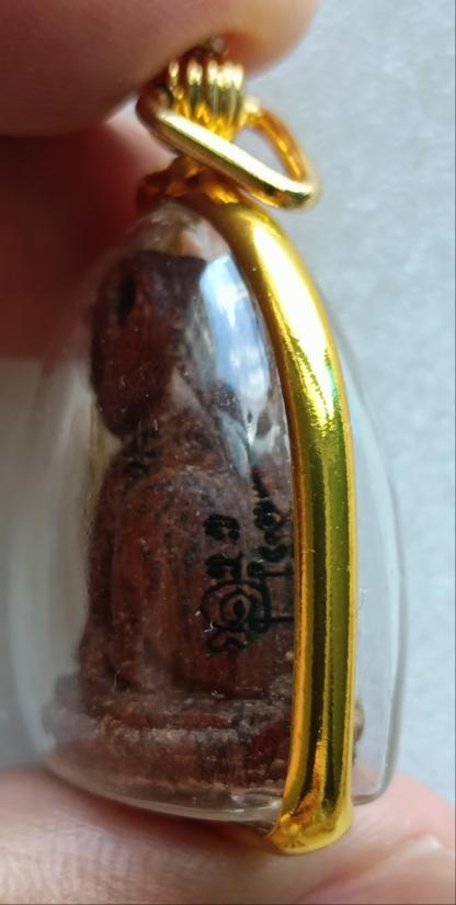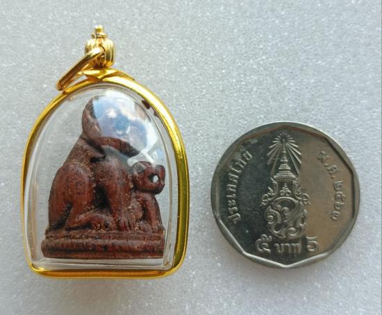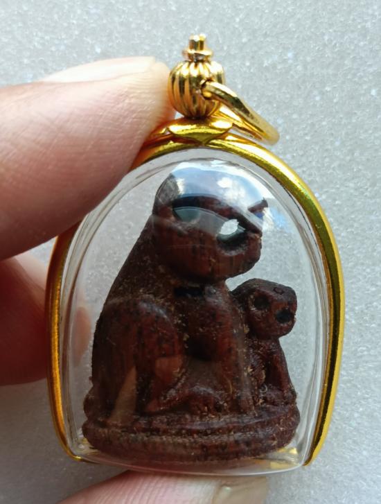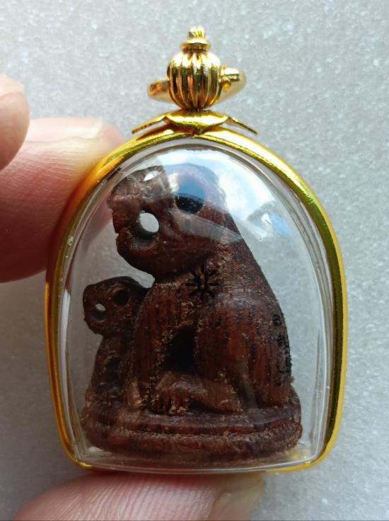วัดใจเคาะเดียวแดงจ้า เสือคู่ไม้แกะ หมายเลข17 พระอาจารย์ประสูติ วัดในเตา เลี่ยมกรอบพร้อมใช้ เคาะเดียวแดงจ้า