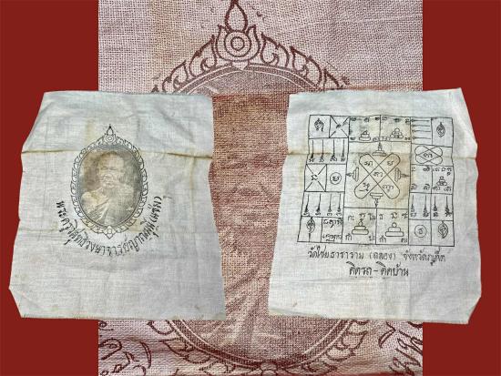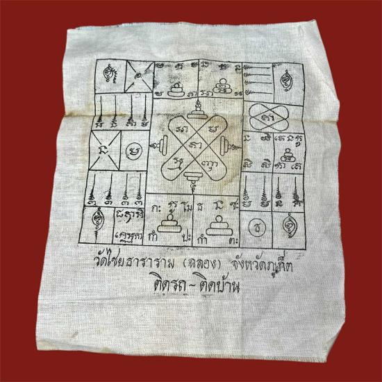 ผ้ายันต์พิมพ์สองหน้า หลวงพ่อแช่ม วัดฉลอง (วัดไชยธาราราม) จ.ภูเก็ต ปี 2521 สำหรับติดรถ-ติดบ้าน สวยมาก...