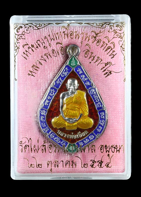 เหรียญรุ่นซื้อที่ดิน หลวงพ่อเอียด วัดไผ่ล้อม จ.อยุธยา ปี 54 เนื้อเงินลงยา 3 สี กล่องเดิม |