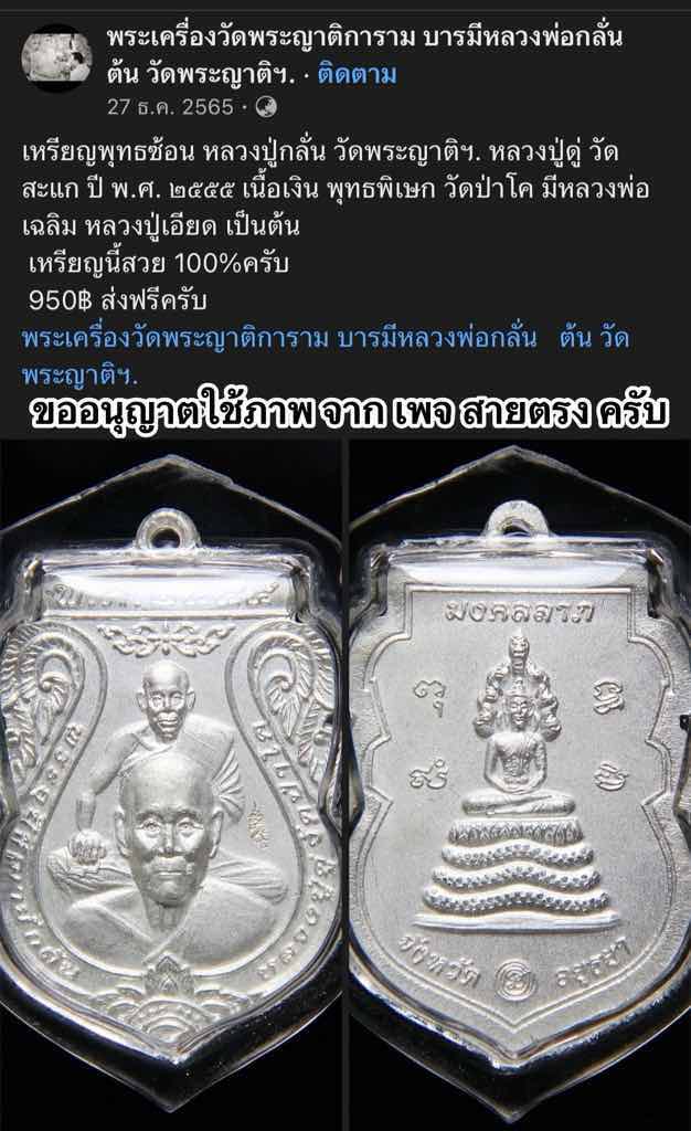 400.- ems เหรียญพุทธซ้อน หลวงพ่อกลั่น วัดพระญาติ - หลวงปู่ดู่ วัดสะแก ปี 2555 ออกวัดป่าโค จ.อยุธยา เนื้อเงิน หลวงพ่อรวย วัดตะโก , เพิ่ม วัดป้อมแก้ว , พูน วัดบ้านแพน ร่วมเสก ตอกโค๊ด ชัดเจน