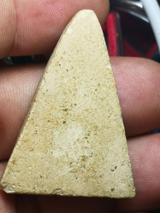พระผงพิมพ์สามเหลี่ยม หลังเรียบเก่าไม่ทราบที่ สภาพตามรูปราคาเบาๆ |