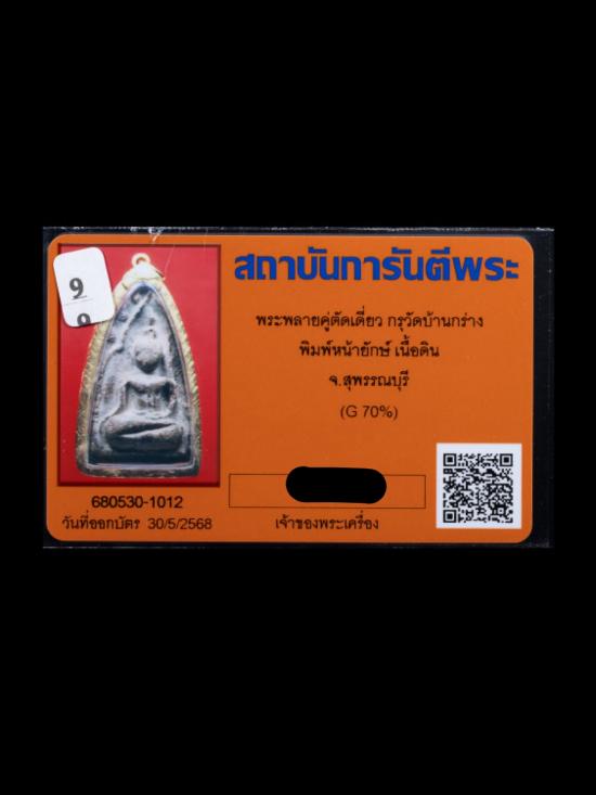 เคาะเดียว ไม่ต้องวัดใจ พระพลายคู่ตัดเดี่ยว ขุนแผน กรุวัดบ้านกร่าง พิมพ์หน้ายักษ์ พร้อมเลี่ยมทองและบัตร