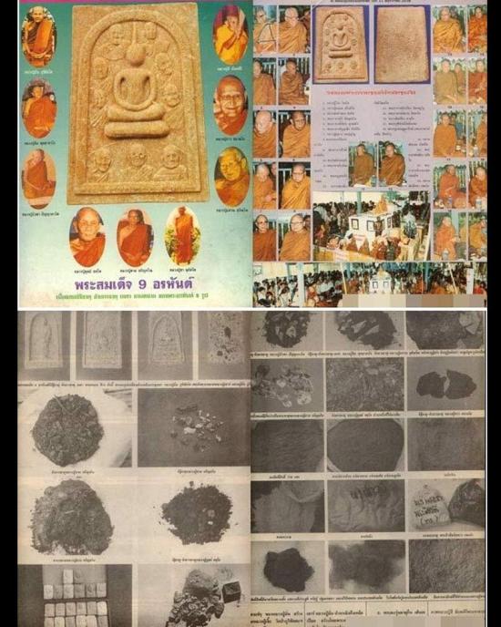| รายละเอียด | พระสมเด็จ 9 อรหันต์มวลสารดีมากมายเนื้อผสมอัฐิธาตุอังคารธาตุเกศาและชานหมากของพระอรหันต์ 9 รูปเป็นพระที่สร้างโดยเจ้าของนิตยสารพระโลกทิพย์,ฤทธิ์อำนาจเมื่อหลายปีมาแล้ว​ นิยมห้อยบูชากันในหมู่ศิษย์และฆราวาสที่นับถือครูบาอาจารย์สายพระป่าสายกรรมฐานเพราะเป็นพระดีและมีประสบการณ์กันมากมายปัจจุบันหายากแล้ว พระอรหันต์ 9 รูป มีรายนามดังนี้