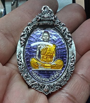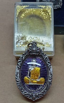 เหรียญมหาบารมี หลวงพ่อคูณ ปี 36 เนื้อเงินลงยาม่วงเหลือง พร้อมเลี่ยมกรอบเงินแท้ 92.5% ขึ้น งานมือ กรอบหนา รมดำ สวยๆ...พร้อมกล่อง