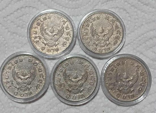เหรียญ 1 บาท หลังครุฑ พ.ศ.2517 ในสมัย รัชกาลที่ 9 พกติดตัวไว้เป็นมงคล เหรียญสภาพผ่านการใช้งาน ผิวเดิม ผิวแตกลายงา จำนวน 5 เหรียญ ครับ |