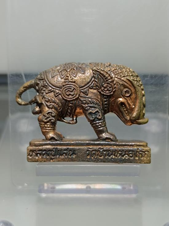 รูปหล่อ พญาหมูพลิกแผ่นดิน หลวงปู่แสน ปสนฺโน วัดบ้านหนองจิก จ.ศรีสะเกษ เนื้อชนวนอุดมวลสารฝังตะกรุดทองแดง หมายเลข 23
