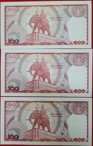 ธนบัตร 100บาท ร.9 แบบ 12 หลังช้างแดง สภาพ UNC ใหม่,สวย, ไม่ผ่านการใช้ 3ฉบับ