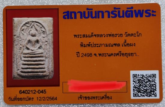 หลวงพ่อรวย วัดตะโก จ.อยุธยา สมเด็จพิมพ์ประภามณฑล รุ่นแรก ปี2498 |