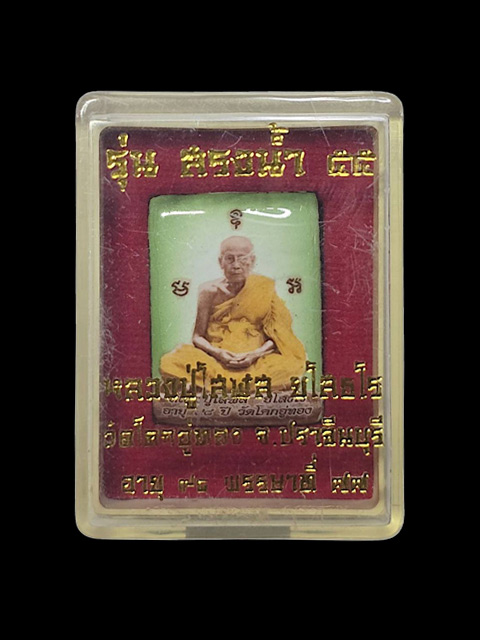 ***ล็อกเก็ตฉากเขียว รุ่น สรงน้ำ ๕๕ ด้านหลังฝังพระปรกใบมะขาม หลวงปู่โสฬส วัดโคกอู่ทอง จ.ปราจีนบุรี***สร้าง 999 องค์