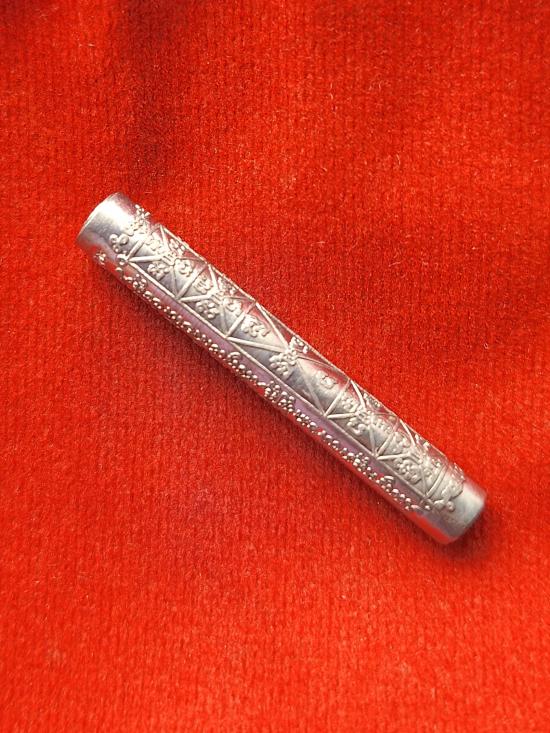 ตะกรุดจักรพรรดิตราธิราช เนื้อตะกั่ว ขนาดยาว 1.5 นิ้ว (ปั้ม) หลวงพ่ออิฏฐ์ วัดจุฬามณี ปลุกเสก 5 ปี ตอกโค๊ด เต็กเหล็ง พร้อมซองใบคาถาเดิมจากวัด 01