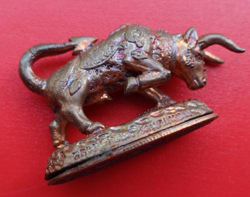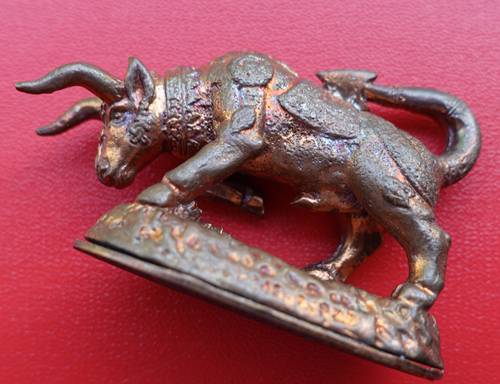 วัวธนู ขนาดพกติดตัว เนื้อนวโลหะขัดเงา หลวงปู่กาหลง ปี 2551