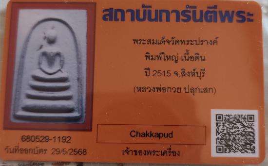 พระสมเด็จหลังวัดพระปรางค์ หลวงพ่อกวยปลุกเสก พร้อมบัตร