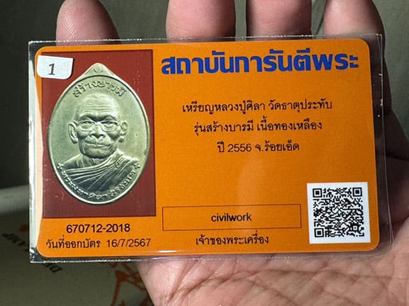 เหรียญสร้างบารมี (รุ่น2) สร้างปี 2556 หลวงปู่พระมหาศิลา สิริจันโท วัดธาตุประทับ