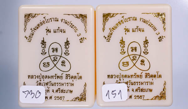 งานหล่อ ประกบ3 ชิ้น ข้างในมีผงงาช้างบด มวลสาร เขย่าดูมีมวลสาร สวยๆ หลวงปู่มหาศิลาร่วมเศก แบ่งเบาๆ ออฟชั่นเนื้อจะมีหลายๆ เนื้อหรือลงยาร่วมด้วย
