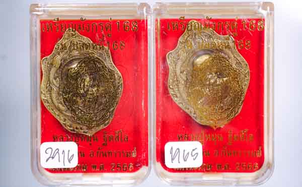 *ทีเดียว 2 องค์ ทองทิพย์รมซาติน เข้มขลังมาก เหรียญมังกรคู่168 รุ่นปลดหนี้168 หลวงปู่หมุน ฐิตสีโล ออกวัดบ้านจาน ปี66 เคาะเดียวแดง*