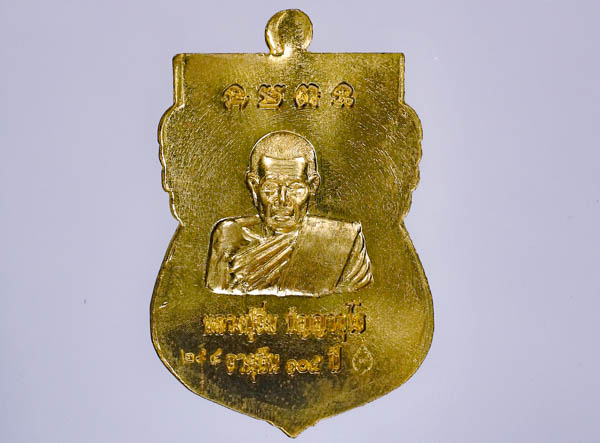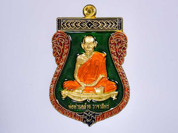 *เหรียญเสมาอายุยืน115ปี หลวงปู่อิ่ม วัดทุ่งนาใหม่ ด้านหน้า พ่อท่ายคล้าย วาจาสิทธิ์ หลังหลวงปู่อิ่ม เนื้อทองทิพย์ลงยา |