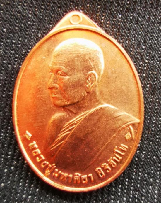 เหรียญเลื่อนสมณศักดิ์รูปไข่ หลวงปู่มหาศิลา สิริจันโท จ.กาฬสินธุ์ 2564 เนื้อทองแดงผิวไฟ
