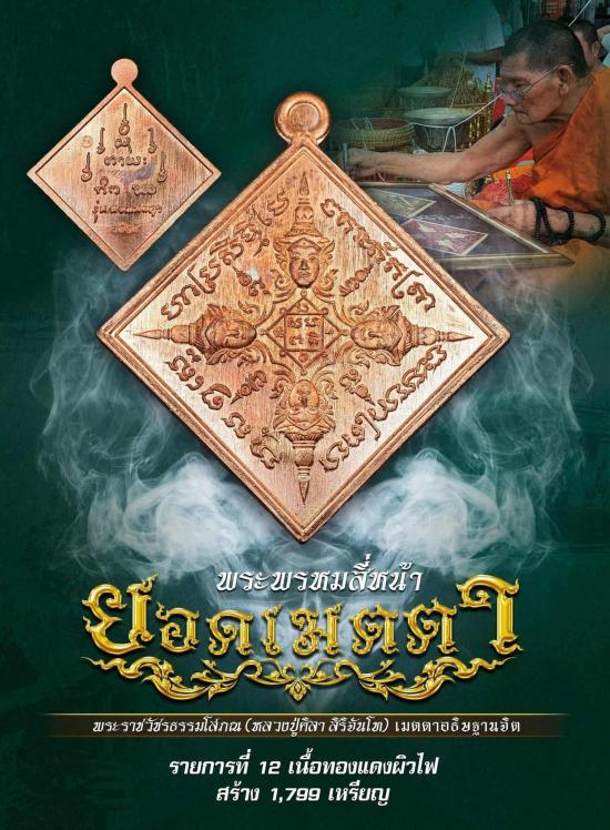 วัดใจ เริ่มที่100บาท เหรียญพรหมสี่หน้า หลวงปู่ศิลา สิริจันโท จ.กาฬสินธุ์ 2568 เนื้อทองแดงผิวไฟ (ซีลเดิม)