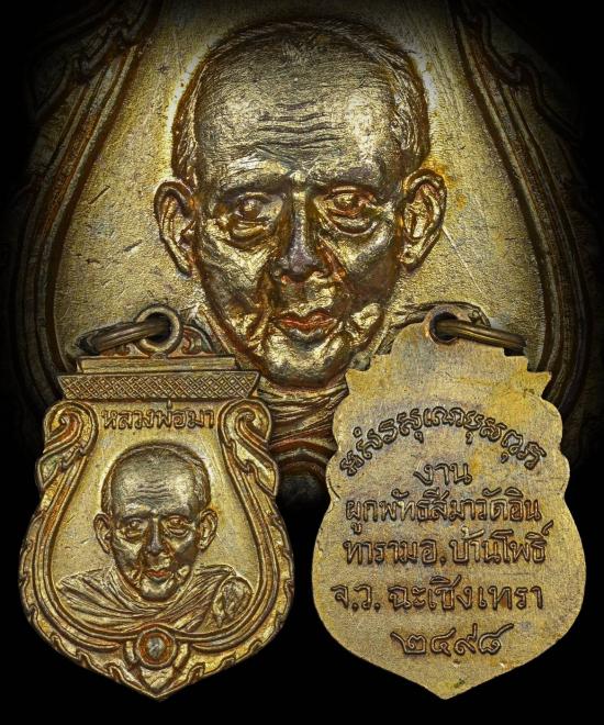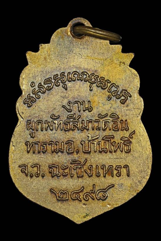 เหรียญหลวงพ่อมา วัดอินทาราม ฉะเชิงเทรา กะไหล่ทอง ปี2498 |
