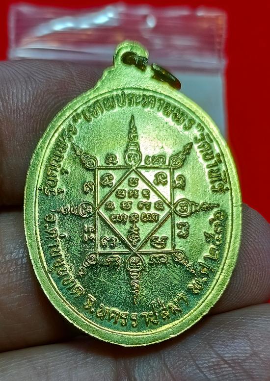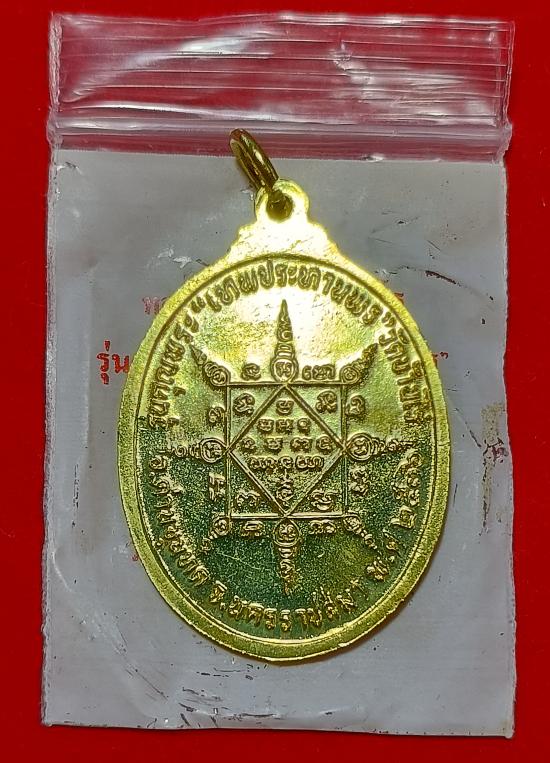 เหรียญรูปไข่ รุ่นเทพประทานพร เนื้อทองฝาบาตร ปี 2536 สวยเดิมไม่แตกไม่ราน พร้อมซองเดิม รับประกันตามกฏ
