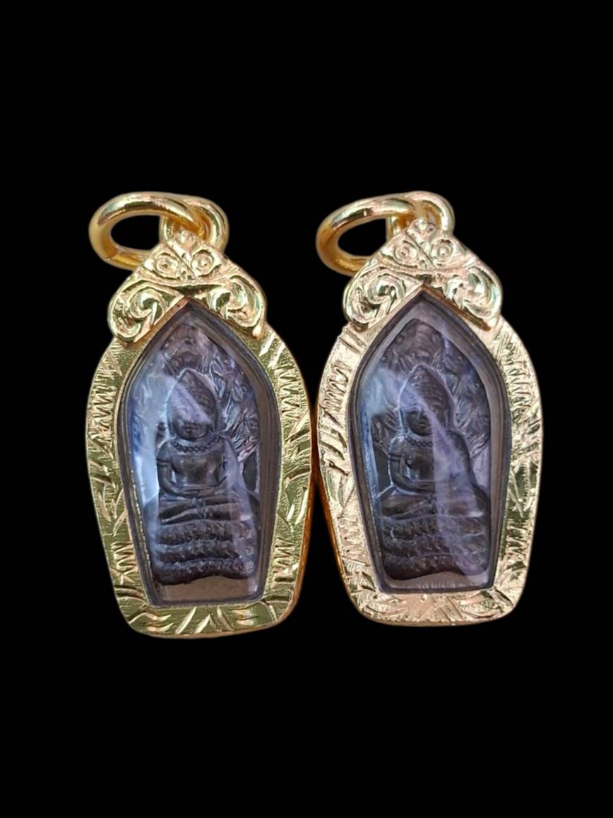 มา 2 องค์ พระปรกใบมะขาม หลวงพ่อคูณ ปริสุทโธ 72 รุ่นเมตตาชายเเดนปี 2537 เนื้อนวะ พร้อมเลี่ยมกรอบชุบทองไมครอน พร้อมกล่อง