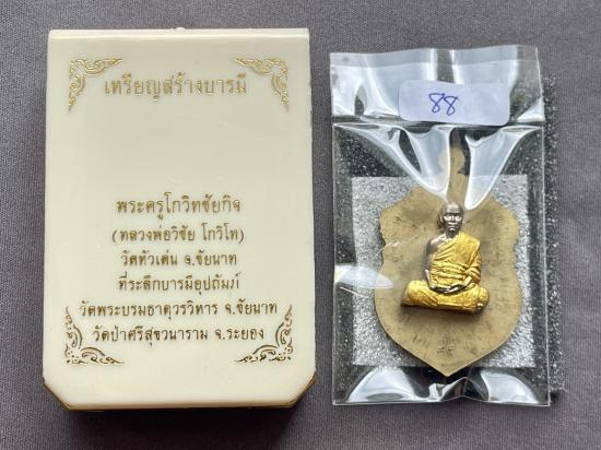 เหรียญเสมาสร้างบารมี หลวงพ่อวิชัย วัดหัวเด่น "เนื้อชนวนลงยาราชาวดีหลังกึ่งเรียบ" (กรรมการ) เลขมงคลรวย 88 |