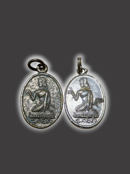 A2228.วัดใจ เหรียญนางกวัก หลังพระพุทธ หลวงพ่อจง วัดหน้าต่างนอก ปี 2500 จัดให้ 2 เหรียญ เดิมๆ เคาะเดียวเเดง