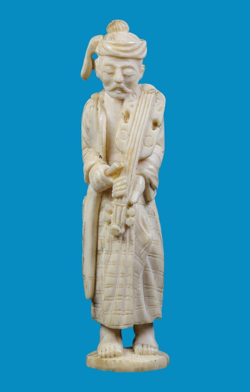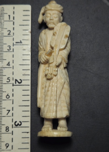 พระงาแกะศิลปะพม่าโบราณ แกะเป็นคนกำลังสีซอ ขนาดสูง ตามภาพ ได้จากบ้านเก่าเสาโย้ อายุเกิน 50 ปีครับ