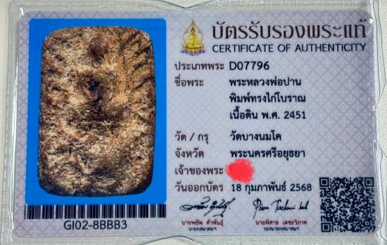 หลวงพ่อปาน วัดบางนมโค พิมพ์ทรงไก่โบราณ ผงอุดเต็ม พร้อมบัตรสมาคม