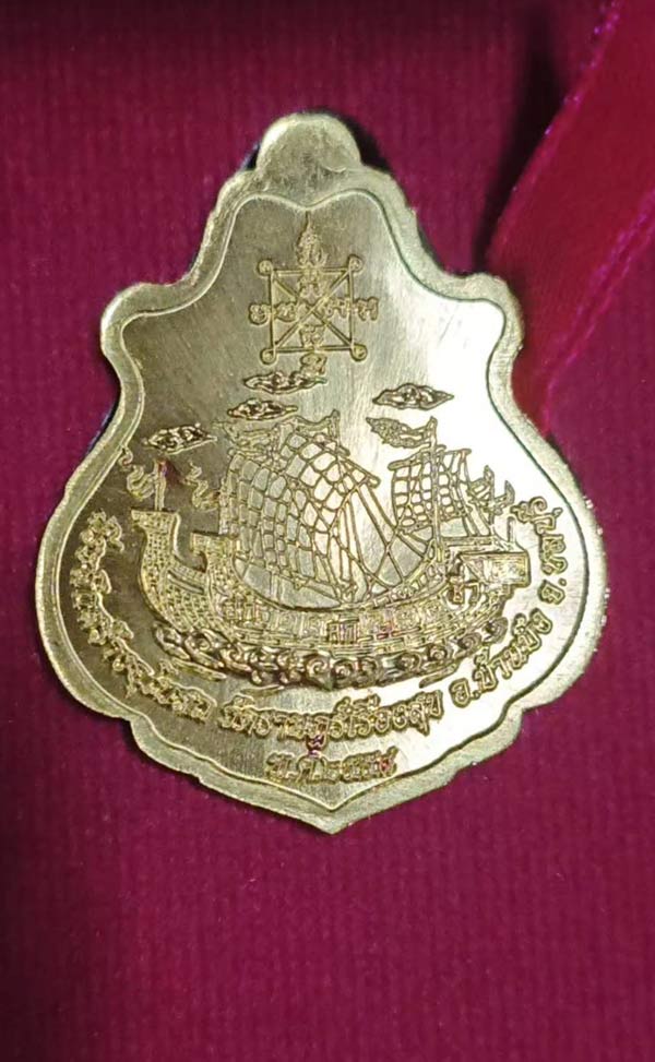 ชื่อพระเครื่อง เหรียญปาดตาลสำเภาทอง หลวงปู่ฮก รตินธโร วัดราษฎร์เรืองสุข(วัดมาบลำบิด) ปี 58 ชลบุรี เนื้อทองคำ ลงยาสีแดง ตอกโค๊ต เลข 202