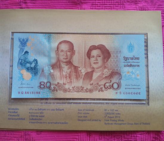 ธนบัตรเฉลิมพระชนม์ ๘๐พรรษา ๑๒สิงหาคม ๒๕๕๕แปดสิบบาท |