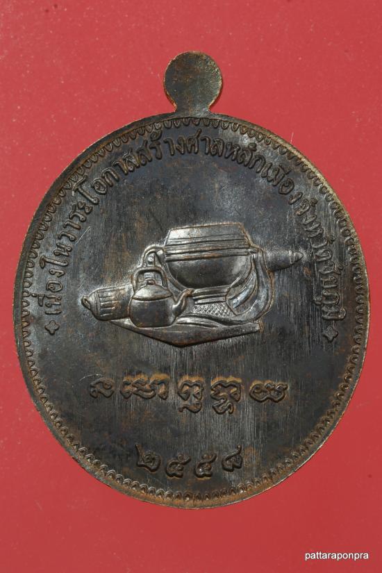 เหรียญหลวงพ่อสายทอง รุ่นประวัติศาสตร์ไตรภาคี ปี 2558 เนื้อทองแดงรมดำ หมายเลข 2989 |