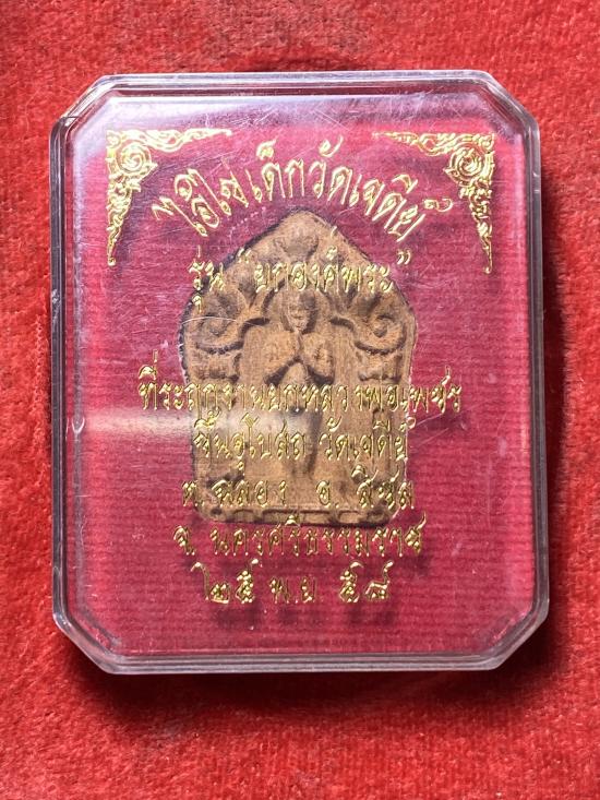 : ไอ้ไข้ เด็กวัดเจดีย์ เนื้อไม้ขนุนแกะสลัก 2558 พิมพ์ซุ้มประตู พิมพ์เล็กรุ่น "ยกองค์พระ" ต.ฉลอง อ.สิชล จ.นครศรีธรรมราช |