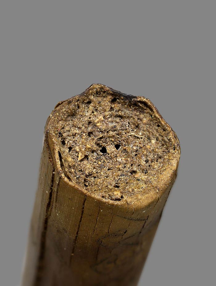 (เริ่มที่300)ตะกรุดใบลาน(ไม่ทราบที่)พร้อมรอยจารย์ยันต์ อุดด้วยผง ขนาด ยาว 2.7นิ้ว อ้วน 9 มิลลิเมตร