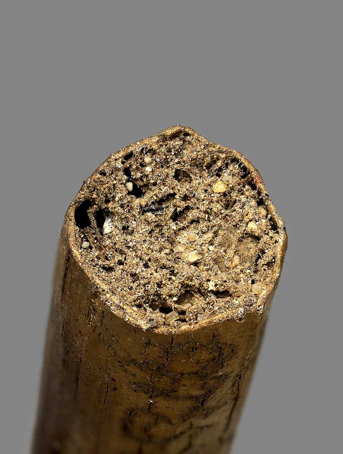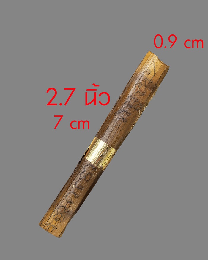 ตะกรุดใบลาน(ไม่ทราบที่)พร้อมรอยจารย์ยันต์ อุดด้วยผง ขนาด ยาว 2.7นิ้ว อ้วน 9 มิลลิเมตร