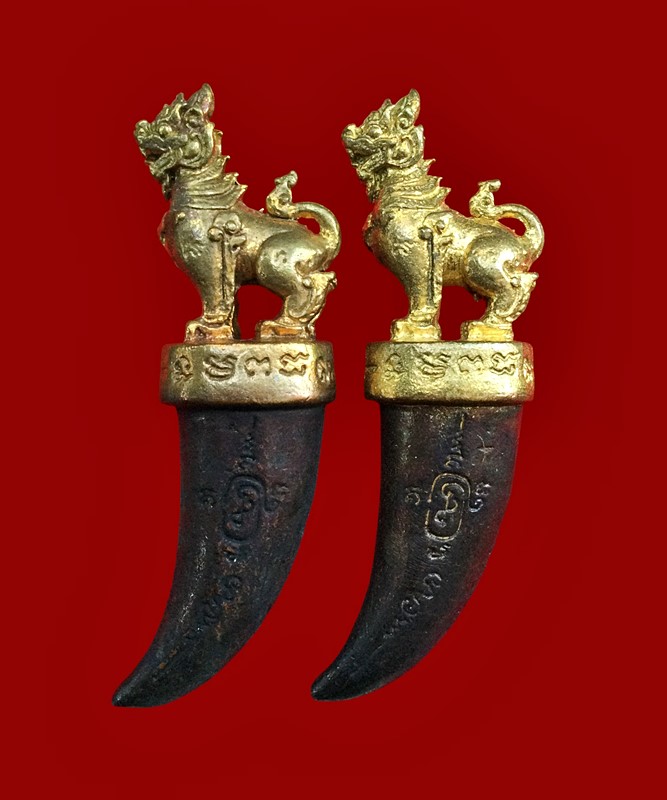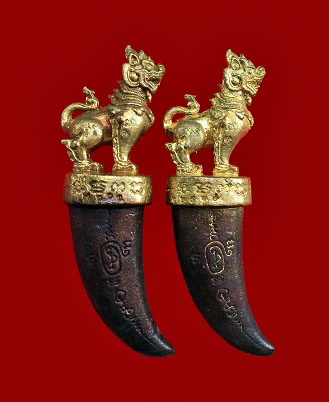 +!!เคาะเดียวllดง ตลอดสาย!!+ (รับ 2 อัน) เขี้ยวสัมฤทธิ์สิงห์มหาโชค มหาเศรษฐี ท่านเจ้าคุณธงชัย วัดไตรมิตร ปี2559 ขนาดสูง 2 นิ้ว ตอกโค้ดและเลขตามรูปครับ พร้อมเลี่ยมเดิมครับ