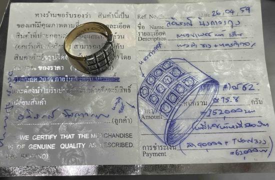 ทำที่ร้านยูไนเต็ด ฟาย จิวเวอรี่ มีใบรับรอง ทำปี59 ราคา152000บาท